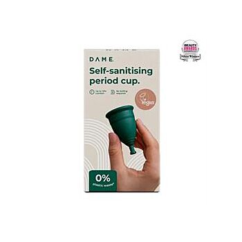 The DAME Period Cup is made from soft and flexible medical grade TPE and powered by natural, biocide-free Saniconcentrates. This means no more boiling or sanitising required between wears, just rinse, wipe and reuse. The cup is 46mm in diameter and 67mm in length, and generally works best for those over 30 or who have given birth vaginally