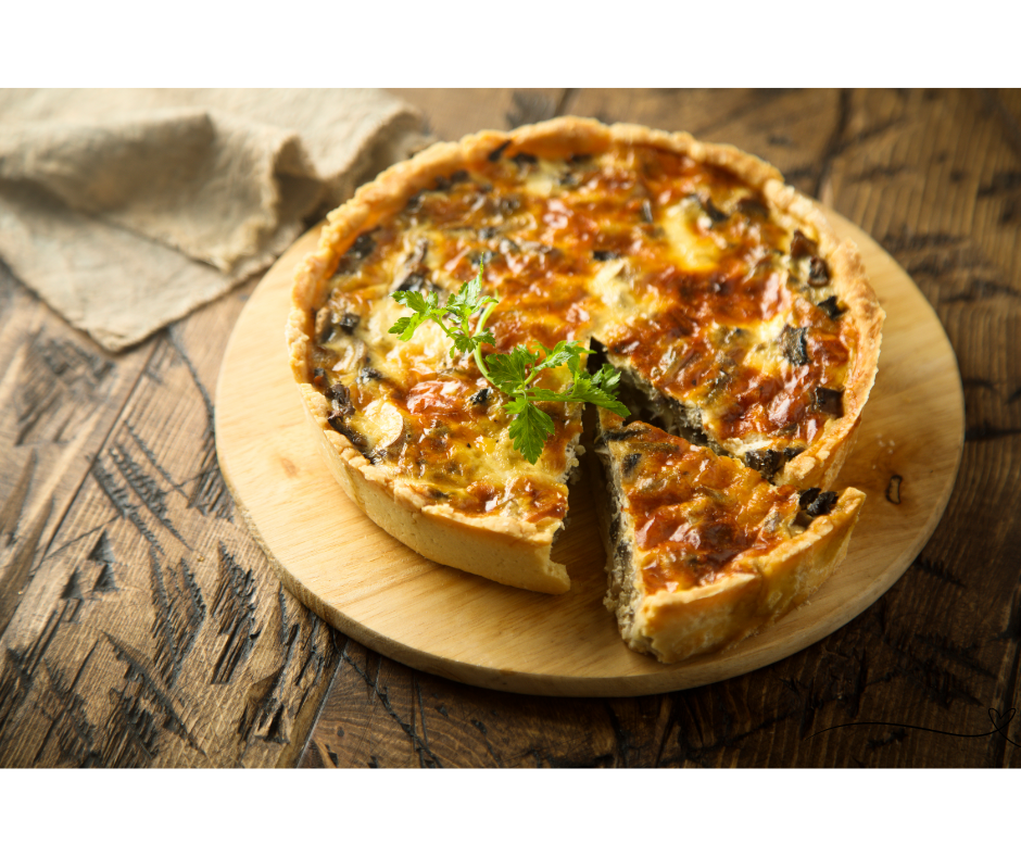 10. Serve the asparagus and mushroom quiche warm or at room temperature,