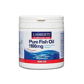 Lamberts Pure Fish Oil 1100mg is a concentrated fish oil product that provides 700mg of omega 3 fatty acids per capsule (355mg of EPA and 237mg of DHA), useful for maintaining general health and wellbeing. With many 1000mg fish oil products providing just 350mg of omega 3s, our product is one of the strongest available in the UK and is therefore widely recommended by practitioners. With many struggling to consume the recommended 'two portions of oily fish per week', fish oil supplements are widely recommended for bolstering body stores of the all-important omega 3 fatty acids. Clinical studies have shown that omega 3s are used by the body in countless ways, including in the following_ DHA contributes to the maintenance of normal vision and brain function. Both DHA and EPA contribute to the normal function of the heart and to the maintenance of normal blood pressure. Responsible sourcing is at the heart of the Lamberts ethos, and as such, our fish oil products have achieved certification by the leading, industry-recognised body, Friend of the Sea. Their mission is one we share, to protect aquatic resources by means of promoting sustainable practices. In addition to this, as a second checkpoint, Lamberts also ensures that the suppliers we use are members of the industry organisation GOED (Global Organisation for EPA and DHA). Their focus is on the quality of products that reach end consumers. The fish oil undergoes a sophisticated purification process that ensures low contaminant levels (well below the strict EU limits), whilst the inclusion of natural vitamin E helps to prevent the oil from oxidation. Our choice of capsules also ensures a largely odour-free product.