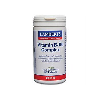 Lamberts Vitamin B-100 Complex is a high strength product that is useful in situations where someone requires a fast improvement in their intake of B vitamins due to a very high requirement or because their diet has been very deficient. In most situations this product should be used for short term supplementation, typically two months, after which time our B-50 complex will provide adequate levels of the B vitamins. Almost every process in the body requires B vitamins. They are needed for the release of energy from food, for a healthy nervous system and they help keep our digestive system working smoothly. They are also needed for healthy skin, hair and nails. The functions of the B vitamins are synergistic so a deficient intake of one or more of them may cause deficiencies in the others by hindering their utilisation. Consequently, most practitioners prefer to give a B Complex (either on its own or in combination with some of the single B vitamins) when supplementation is long-term.