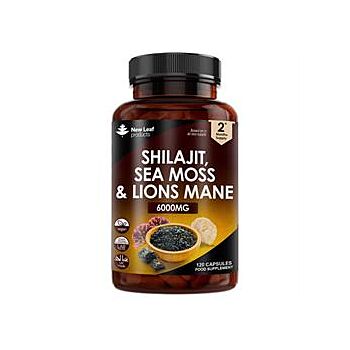 HIGH-QUALITY SHILAJIT, SEA MOSS & LIONS MANE CAPSULES New Leaf's Shilajit, Sea Moss & Lions Mane Capsules provide 6000mg per serving, combining three powerful extracts. Shilajit, rich in fulvic acid, is a mineral-packed substance found in mountainous regions like the Himalayas. This natural ingredient is formed over centuries from plant decomposition and is highly valued in traditional practices. With 120 capsules, this supplement offers a two-month supply. SEA MOSS AND LIONS MANE EXTRACTS Sea Moss, a red algae from the Atlantic coasts, is included for its polysaccharide content, while Lions Mane, a unique mushroom native to various regions, contributes additional bioactive compounds. Both ingredients are provided in their extract forms, ensuring a concentrated, potent source of natural compounds. This makes the capsules more effective compared to non-extract versions of these ingredients. A DIVERSE COMBINATION The combination of Shilajit, Sea Moss, and Lions Mane brings together natural elements from mountains, oceans, and forests. Each ingredient is rich in its own set of nutrients, with fulvic acid and polysaccharides being key components. Using extracts enhances the potency and absorption, providing a well-rounded supplement that efficiently delivers these powerful compounds in a convenient capsule form. SAFETY INFORMATION Do not exceed stated dose. If you are pregnant, breastfeeding, taking any medications or under medical supervision, please consult your doctor or healthcare professional before use. Not suitable for persons under the age of 18. Store in a cool, dry place and keep away from children at all times. Food supplements should NOT be used as a substitute for a balanced diet and healthy lifestyle. Discontinue use and consult a GP if adverse reactions occur. INGREDIENTS Brown Rice Flour, Capsule Shell (Hydroxypropyl Methylcellulose), Irish Sea Moss 15:1 Extract, Lion's Mane 15:1 Extract (50% Polysaccharides), Shilajit 20:1 Extract (60% Fulvic Acid). DIRECTIONS Take two capsules per day with a full glass of water. Do not exceed stated dosage.