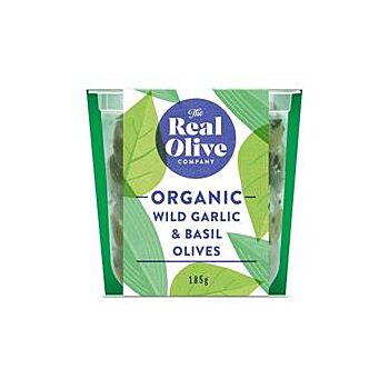 The Real Olive Company - Org Wild Garlic & Basil Olives (150g) is available to buy in increments of 1